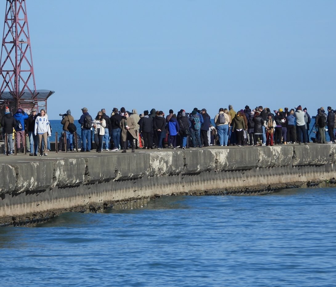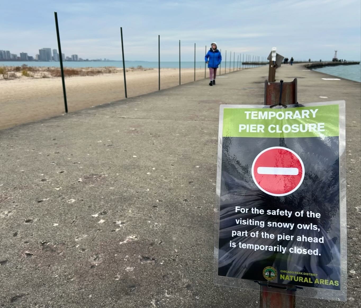 To ensure the safety of the Snowy Owls, the pier at Montrose Point Bird Sanctuary was temporarily closed. Photo by the Chicago Park District.